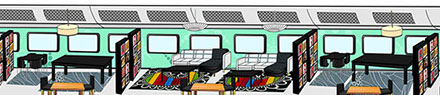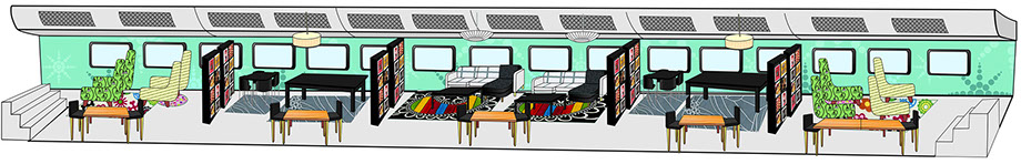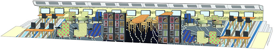 Fastening floor for fixating different types of furniture securely. Marketing Promotional wraps for on the train exterior to show travelers where the different IKEA coupes are.