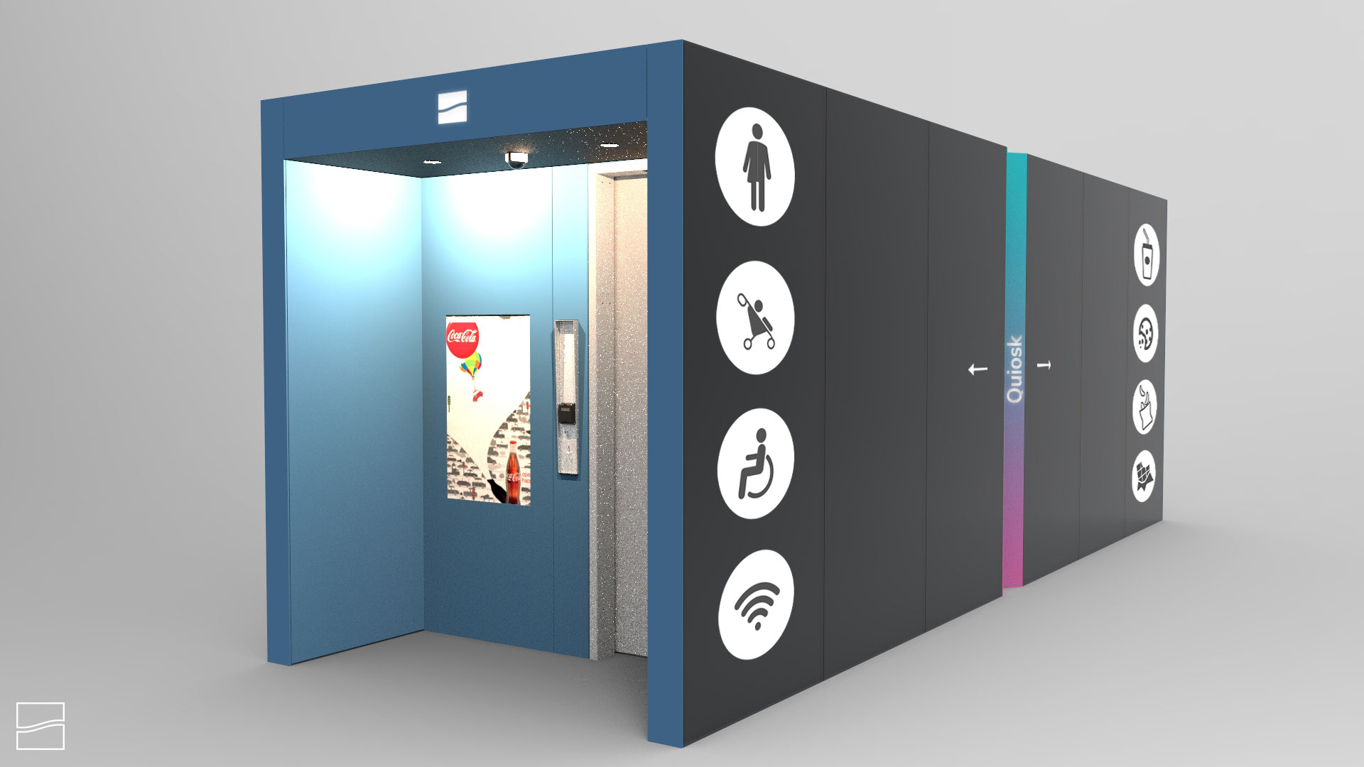 [Product-Space design] Designed thoroughly to clean thoroughly for the private and public sector in The Netherlands, Belgium and Sweden. My focus was on making the whole construction and design around the toilet. Setting the new standard in public toilet cleaning Creating a modular system that can easily be built, repaired and dismantled